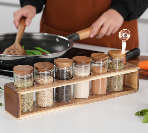 Each jar features a bamboo lid and silicone seal to effectively keep out moisture and dust, preserving the freshness of the spices.
